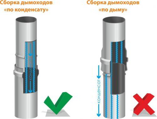 Сборка элементов дымохода производится снизу, от теплогенерирующего аппарата, вверх.